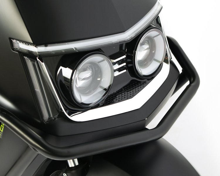 Мощный двигатель и емкий графеновый аккумулятор 72 В 38 А·ч обеспечивают владельцу SUNRA K6 увеличенную тяговую силу со скоростью 50 км/ч и расширенную дальность езды на одном заряде – до 110 км. Функциональные детали и продуманные элементы сделают поездку не только приятной, но и безопасной. Система контроля сцепления, дисковые тормоза, пятиуровневая регулировка амортизации и безупречная маневренность сделают владельца настоящим лидером на дороге. Усиление металической рамой по контурам корпуса обезопасит K6 PRO от случайных падений или аварий. Грузовой бокс в комплекте со скутером.