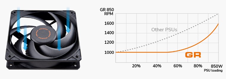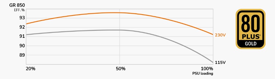 Серія GR вирізняється високоефективною конструкцією, що перевершує стандарт 80 PLUS Gold, що допоможе вам заощадити гроші на рахунках за електроенергію.