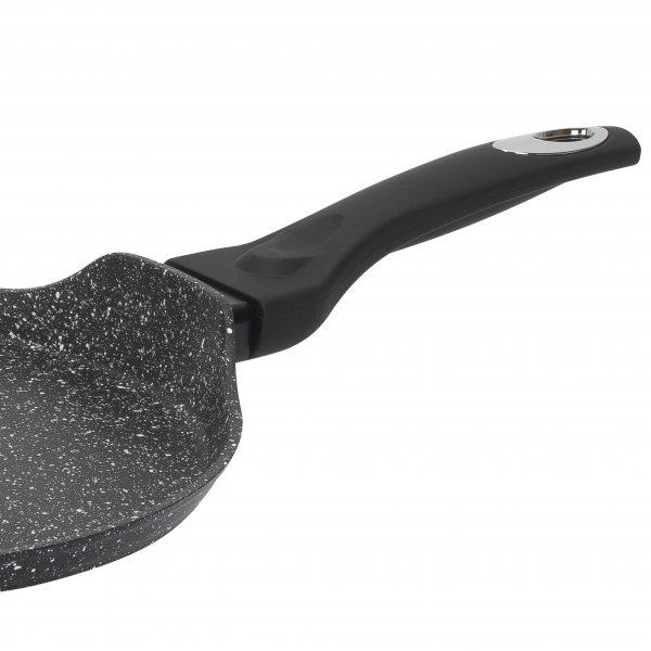 - Ергономічна прогумована ручка з петлею для підвішування сковороди
