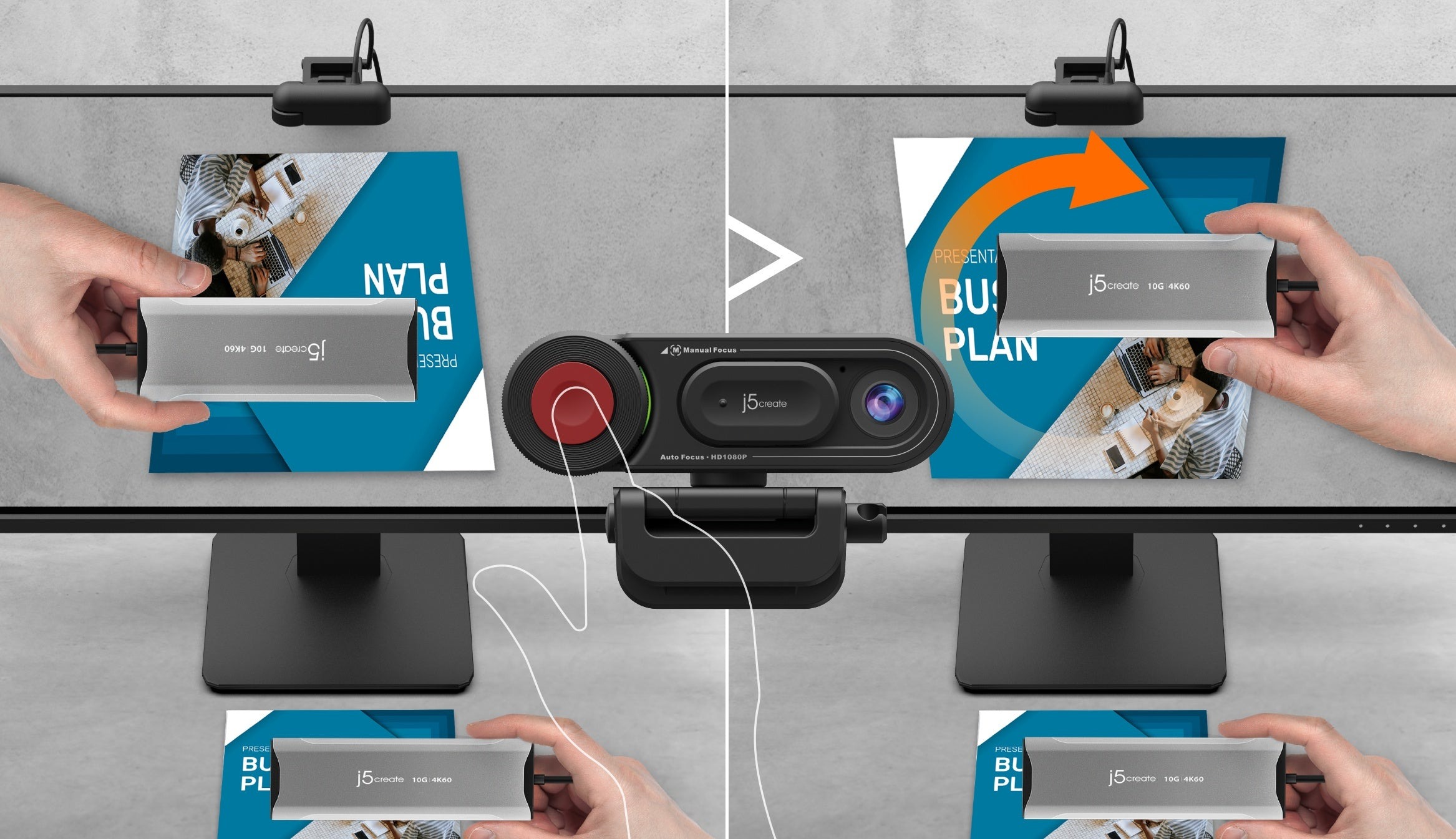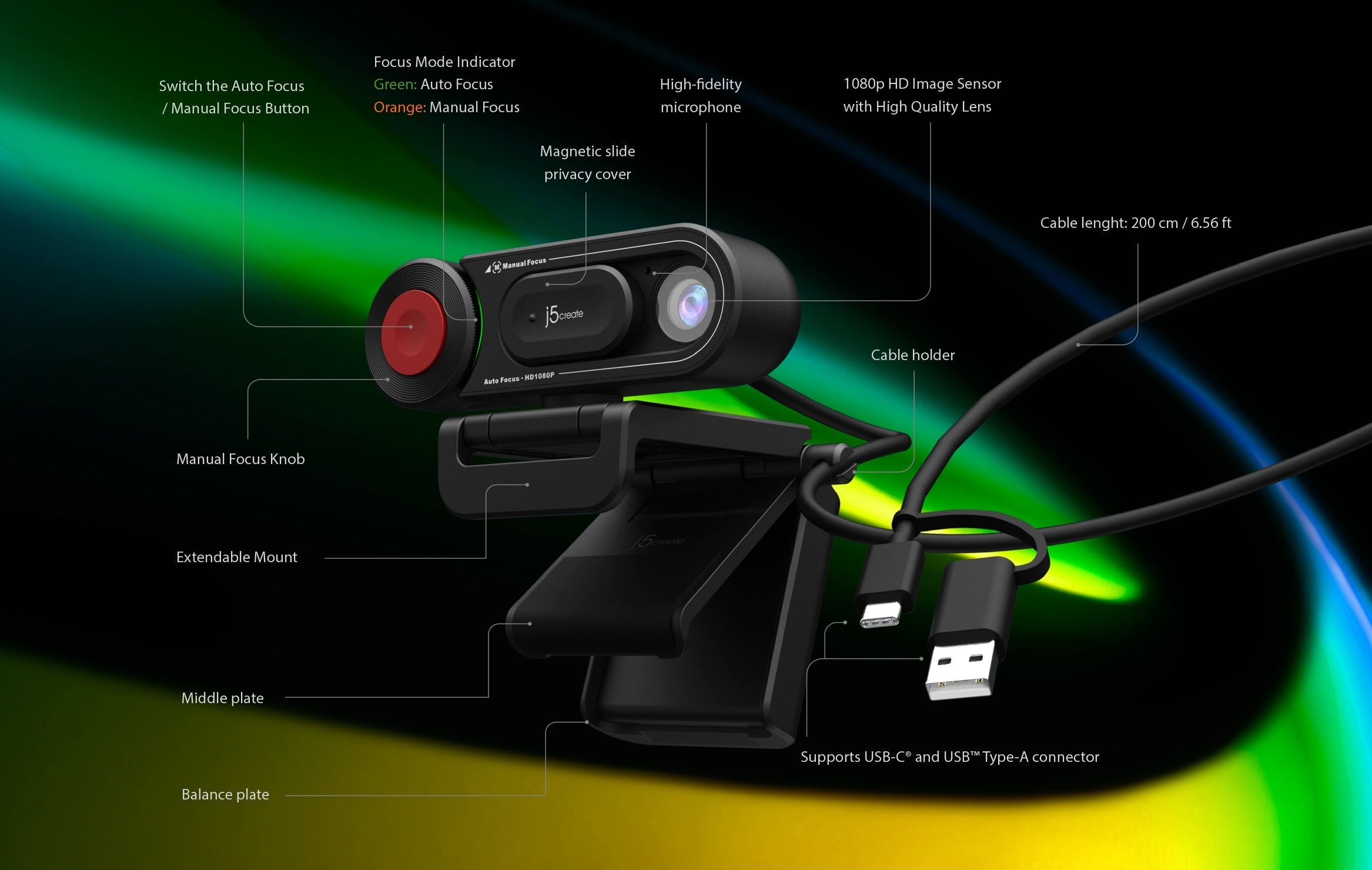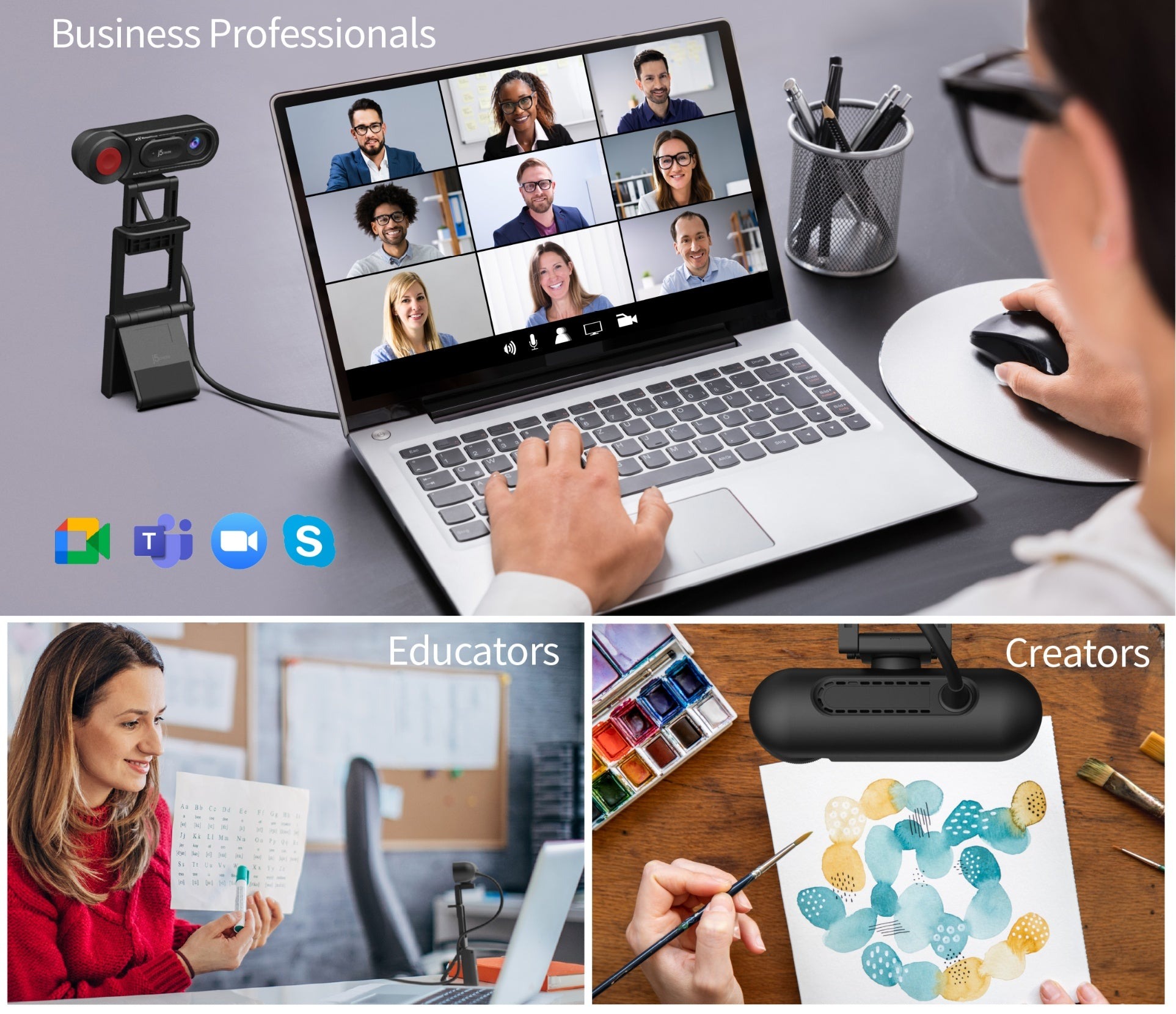 Має функції автофокусування та ручного фокусування для зменшення розмитості. Підтримує роздільну здатність до Full HD 1080p для чіткого та ясного відео; це ідеальна камера для використання в офісі та вдома. Спеціальна конструкція кріплення дозволяє легко перемикатися між зйомкою документів та спілкуванням віч-на-віч. Поставляється з високоякісним мікрофоном для зменшення зовнішнього шуму. Підвищує світлочутливість, яка автоматично налаштовується під різні умови освітлення.
