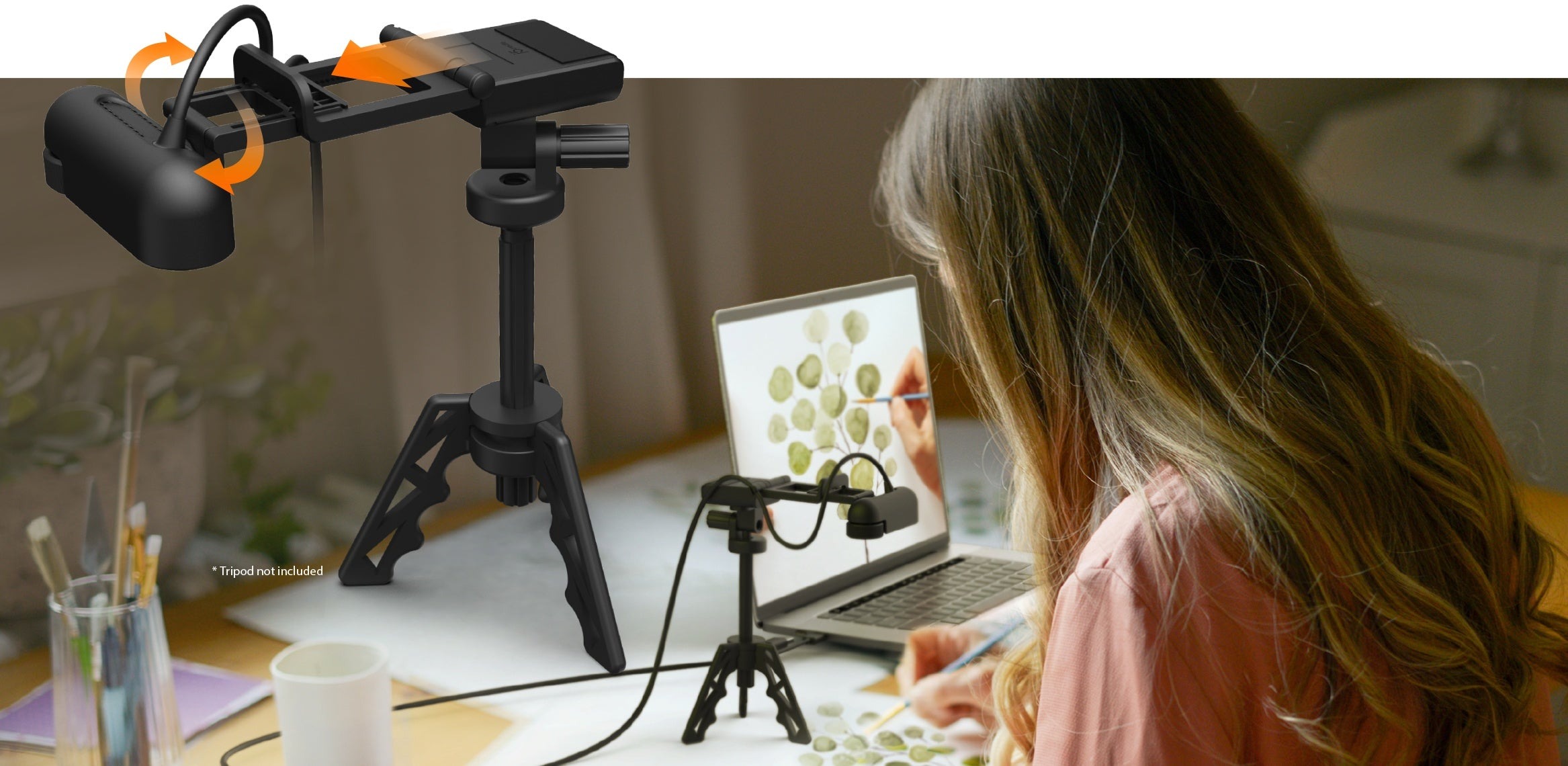 Дозволяє просто розтягнути кріплення веб-камеруи, щоб охопити більшу частину вашої демонстрації.