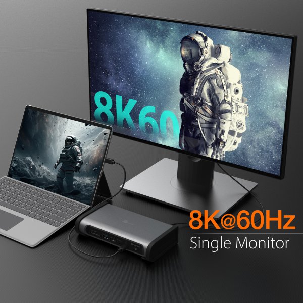 Ця док-станція Thunderbolt™ 4 Quad Display перетворює ваш ноутбук Windows® або Mac® на повноцінну робочу станцію з підтримкою до чотирьох дисплеїв з роздільною здатністю 4K60Hz, трьох дисплеїв з роздільною здатністю 4K60Hz або двох дисплеїв з роздільною здатністю 5K60 Hz або 8K60Hz на одному дисплеї. Підтримує потужність до 98 Вт для заряджання ноутбука. Завдяки чотирьом відеовиходам, п'яти портам USB™ 3.2 і порту USB-C® 3.2 ця док-станція ідеально підходить для ноутбуків з Thunderbolt™ 4, які потребують багато високопродуктивних портів і дисплеїв з високою роздільною здатністю. Ця док-станція Thunderbolt™ 4 також оснащена портом RJ45 2,5 Gigabit Ethernet, кардрідером SD™/microSD™ 4.0 та комбінованим аудіороз'ємом для максимальної продуктивності.