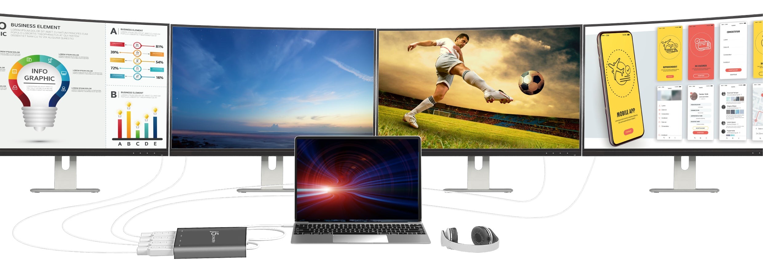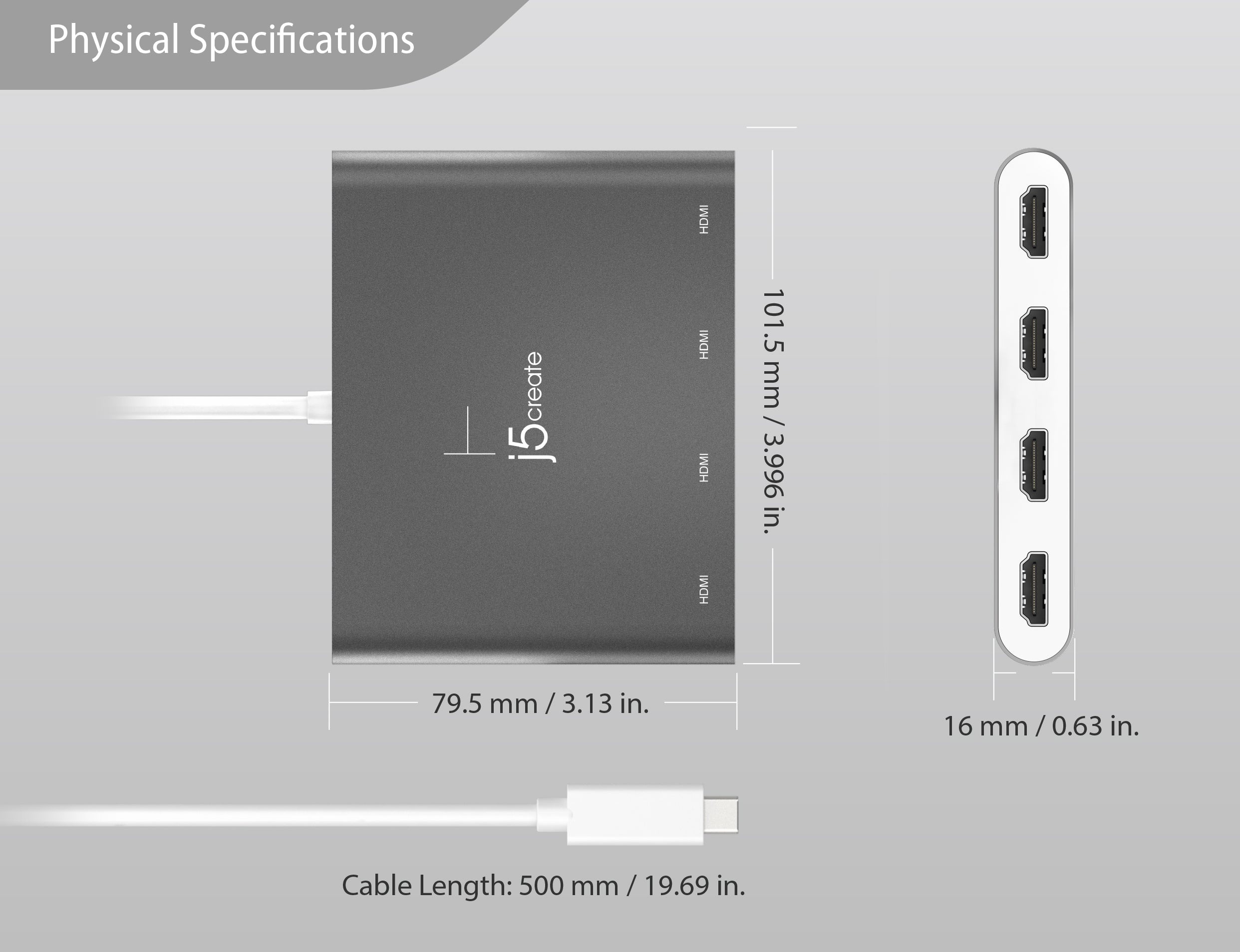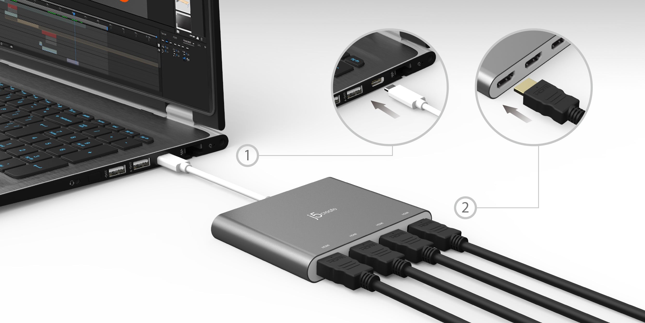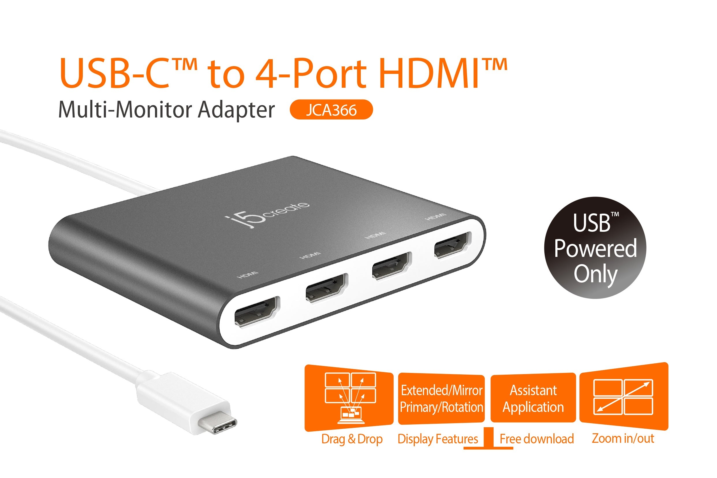 1 - JCA366 USB-C® до 4-портового HDMI™ адаптера для декількох моніторів