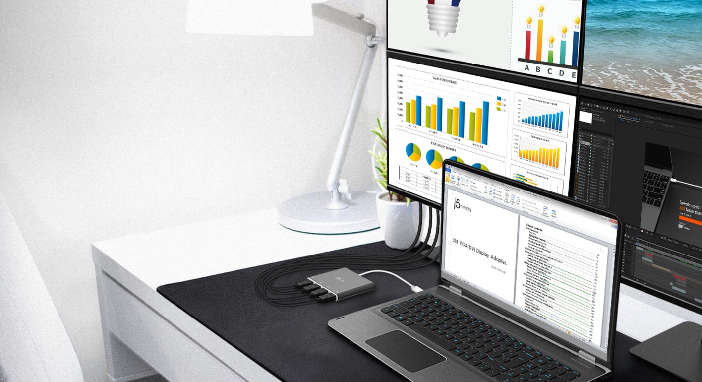 Це ідеальна альтернатива дорогій відеокарті. Ви можете швидко встановити драйвер для JCA366 за допомогою простого підключення USB-C®. Після цього підключіть пристрій до моніторів за допомогою кабелів HDMI™, і ви створите нове візуальне середовище за лічені секунди.