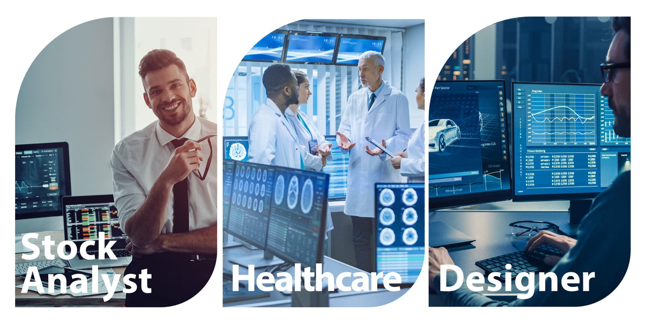 Виконуйте кілька завдань одночасно завдяки більшому простору на робочому столі. Переміщайте та переглядайте великі таблиці на чотирьох екранах без накладання вікон. Ідеально підходить для одночасного перегляду декількох вікон, що підвищує продуктивність стандартних бізнес-додатків.