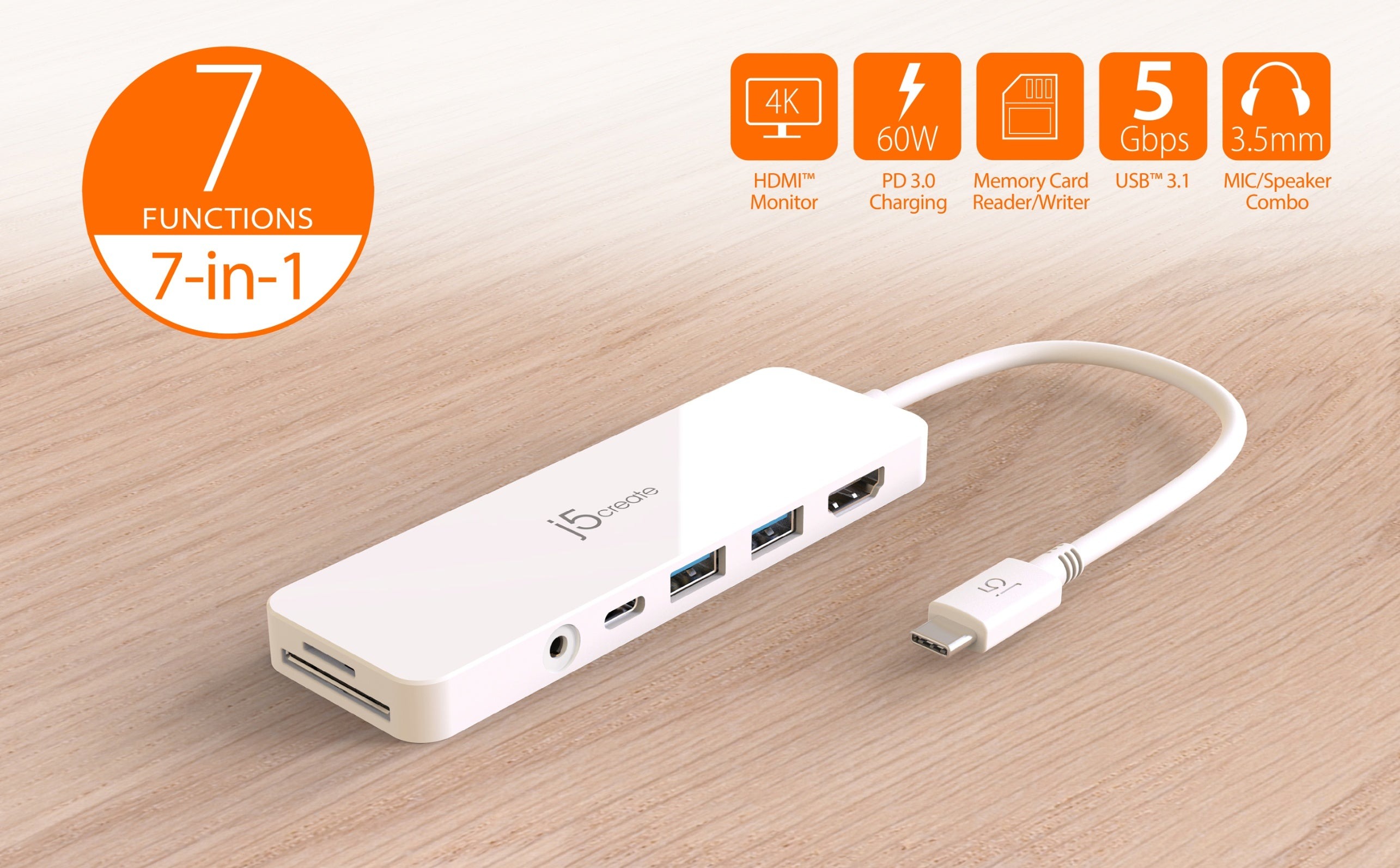 1 - Багатопортовий концентратор JCD373 USB-C® з функцією Power Delivery