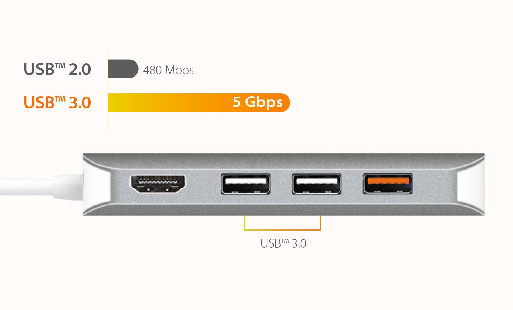 USB™ 3.1 Gen 1 забезпечує швидкість передачі даних до 5 Гбіт/с, що в 10 разів швидше, ніж USB™ 2.0