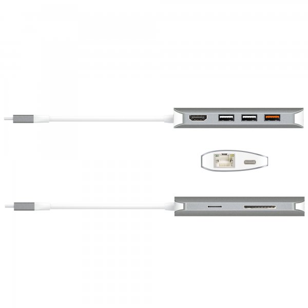 Завдяки USB-C® Power Delivery 3.0 адаптер забезпечує заряджання в обох напрямках при підключенні до адаптера живлення USB-C®. Він також забезпечує прямий доступ до дротової мережі та карт пам'яті SD™ і microSD™.