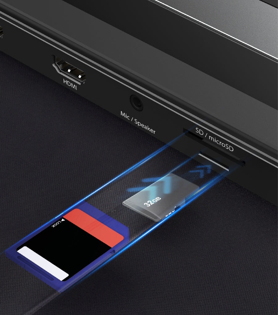 - Прямий доступ до карт пам'яті SD™ і microSD™ для зберігання та передачі даних