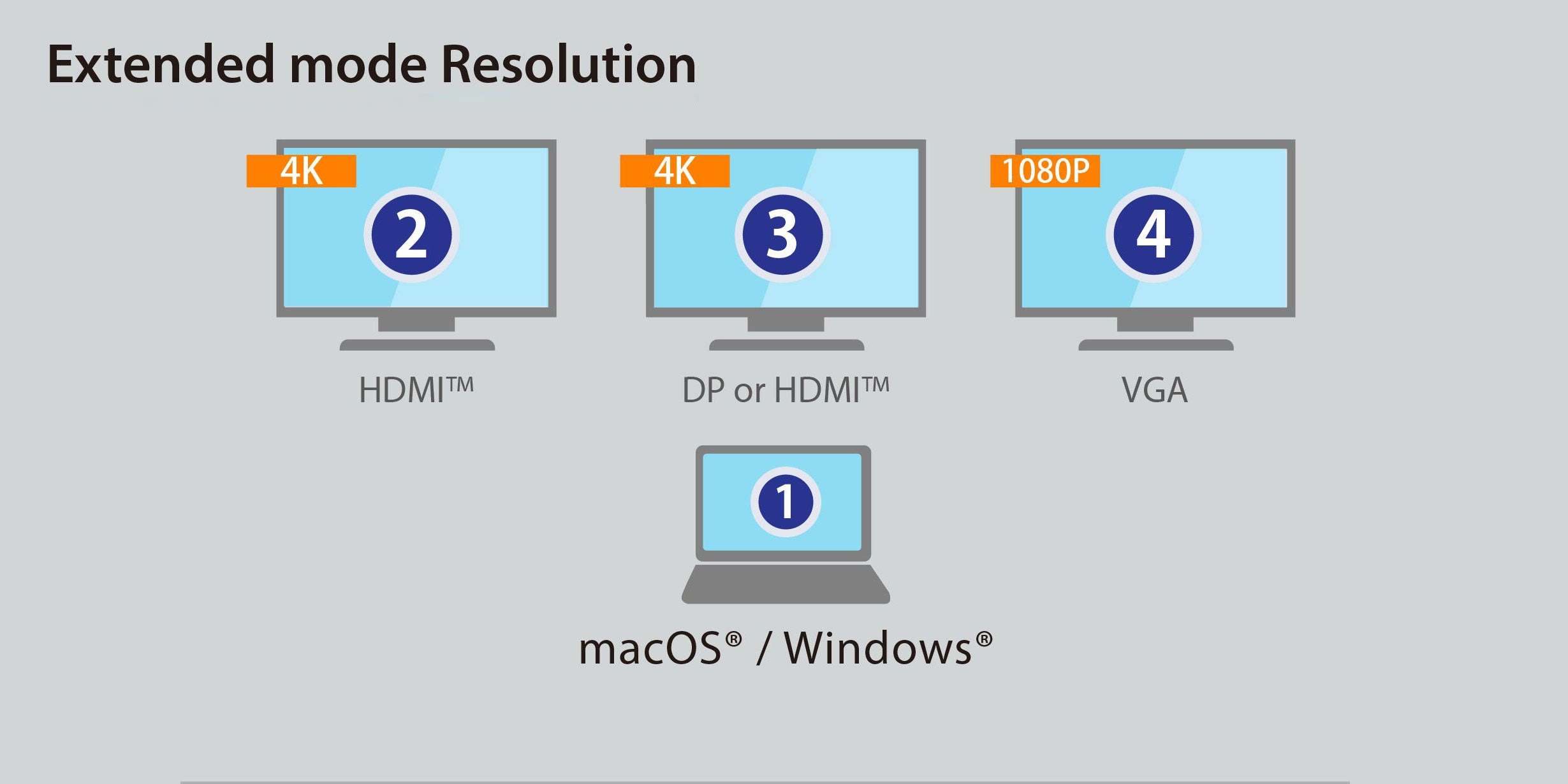 Підтримує режими дзеркального відображення та розширення на Mac® і Windows®. Найпростіший спосіб додати другий або третій дисплей.