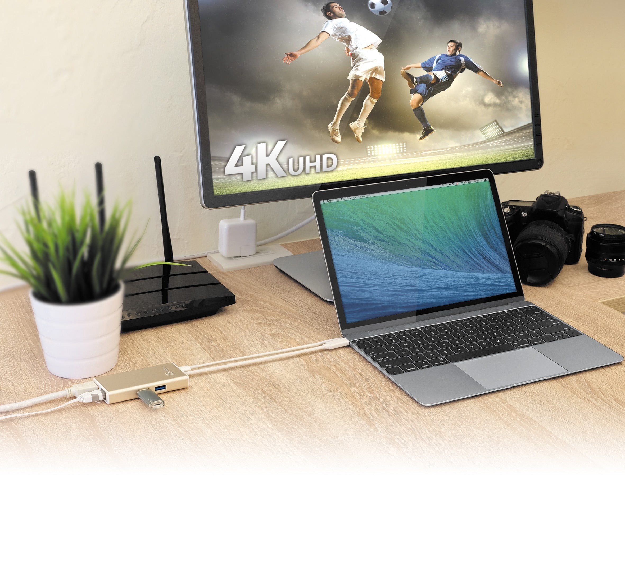 Додайте додаткову функціональність до свого ноутбука за допомогою мультиадаптера JCA374 USB-C®. Цей пристрій дозволяє підключити два додаткові периферійні пристрої USB™, дисплей 4K або 1080p через HDMI™ та Gigabit Ethernet через порт USB-C®. Завдяки високій швидкості передачі даних до 5 Гбіт/с, передача даних відбувається швидко та легко. Завдяки USB™ Power Delivery 3.0 він підтримує заряджання, забезпечуючи живлення підключеного ноутбука під час використання.