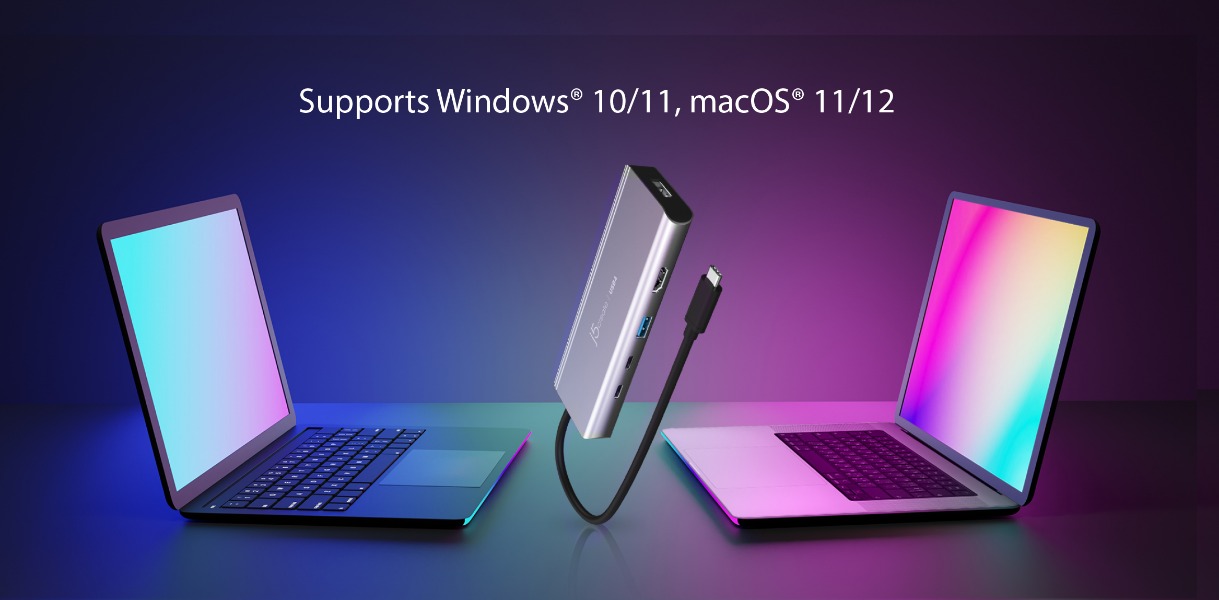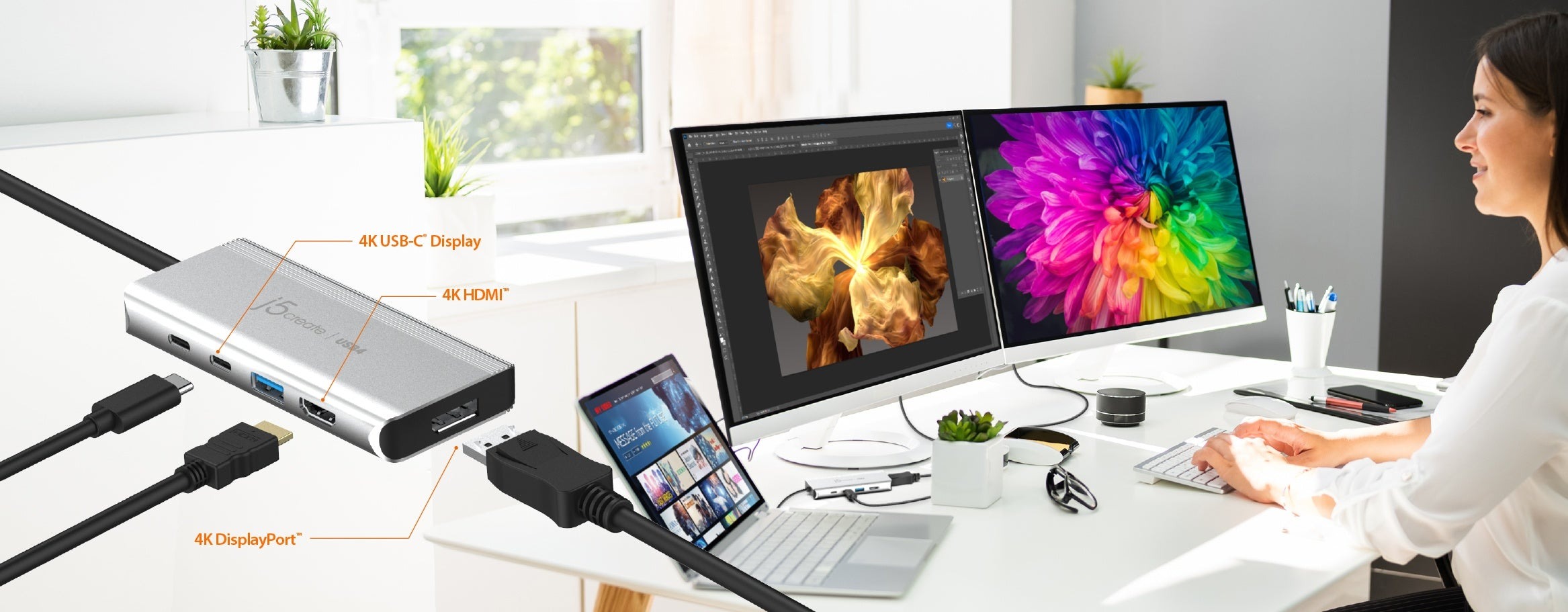 Має вихід DisplayPort™, HDMI™ та USB-C® з підтримкою 4K для налаштування двох моніторів. Сумісний з Thunderbolt™ 3 | 4, не потребує встановлення драйверів. Підтримує режим розширеного робочого столу в macOS® і Windows®.