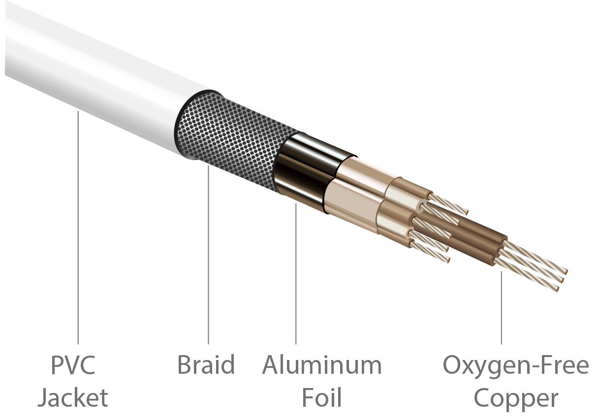 Кілька екранів для захисту від зовнішніх перешкод забезпечують чистоту цифрового сигналу та надають чіткіший звук і зображення. ПВХ-оболонка з міцною, довговічною конструкцією.