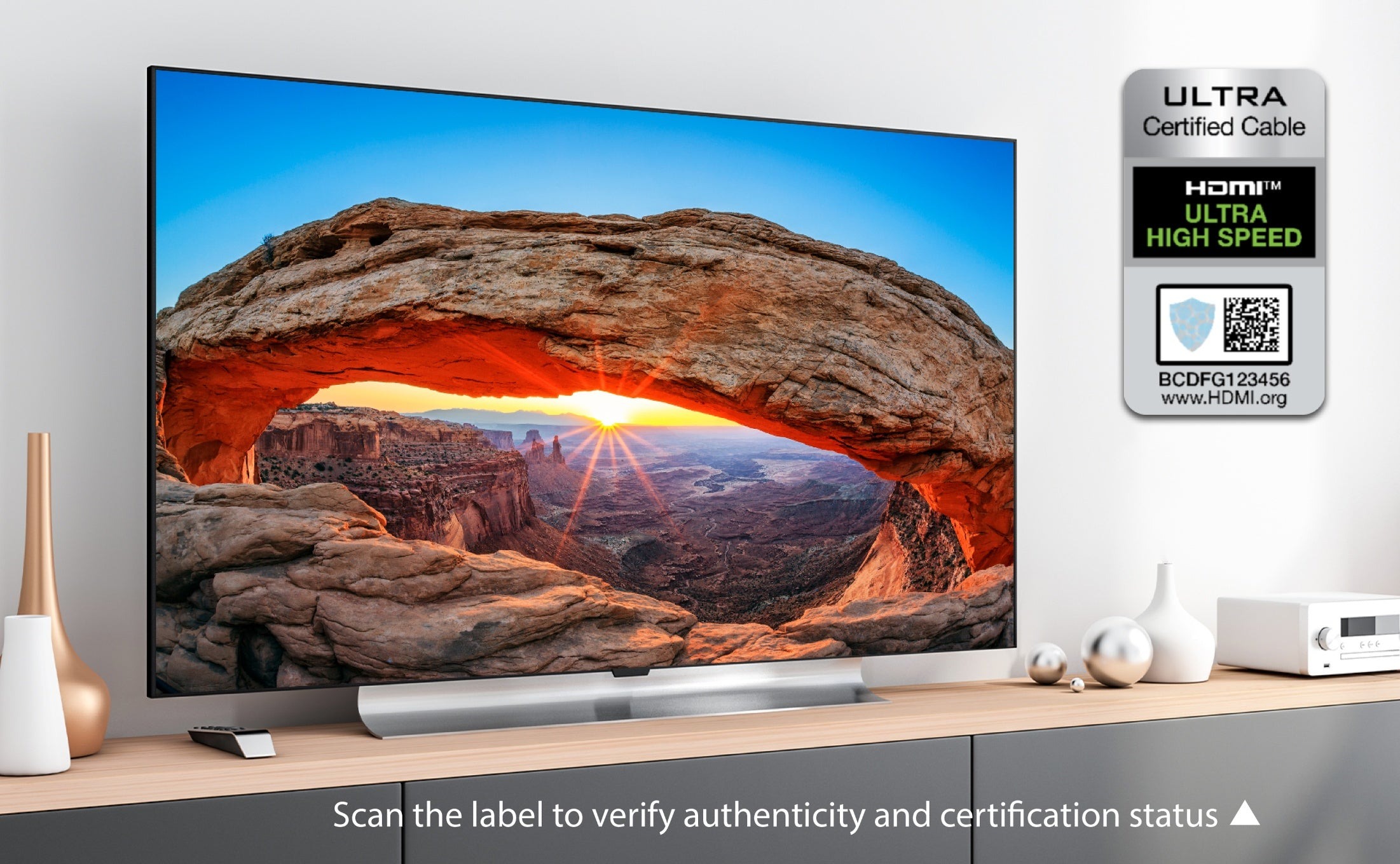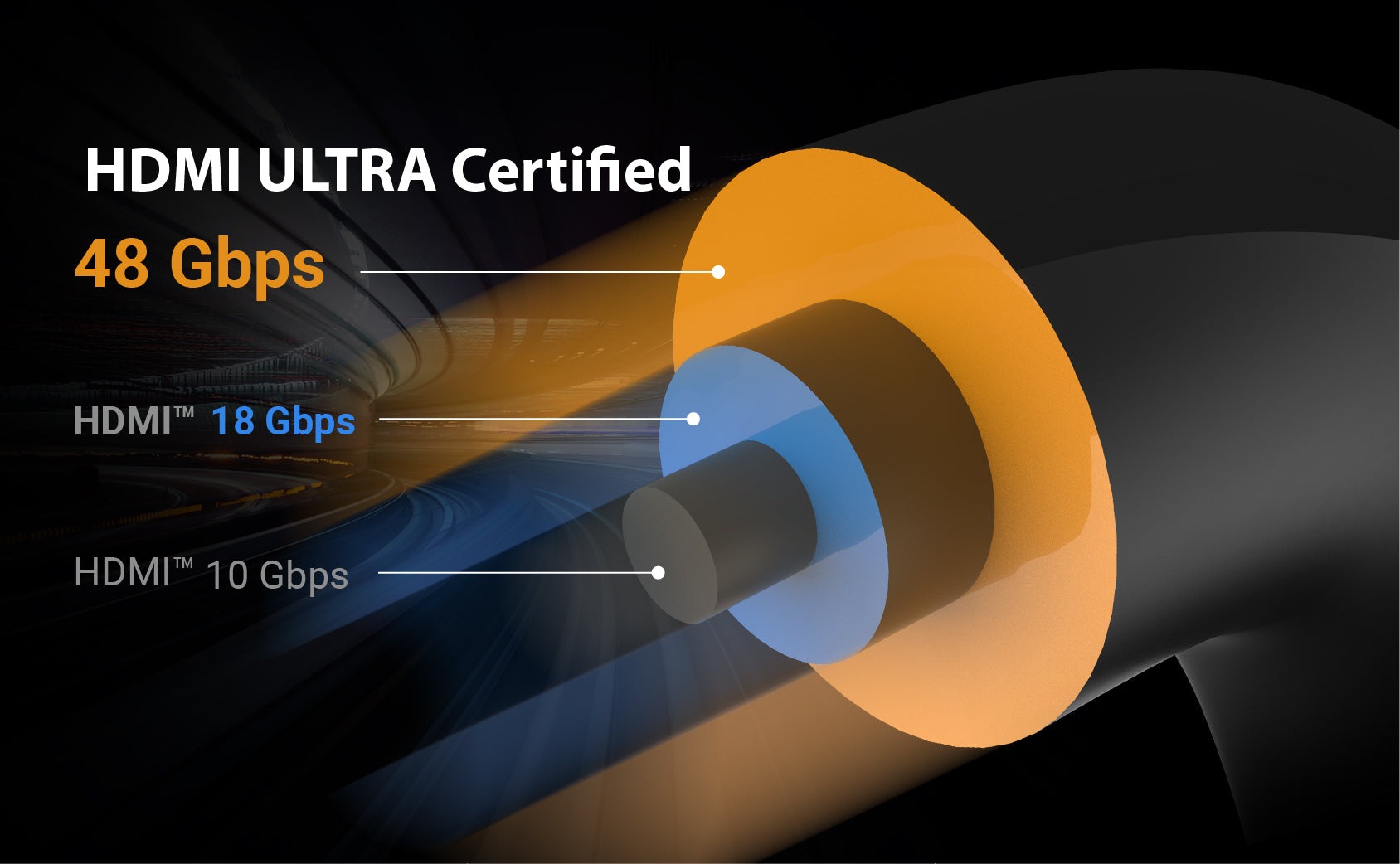 Сертифікований кабель Ultra High Speed HDMI® для забезпечення підтримки всіх функцій HDMI™ ULTRA Certified.