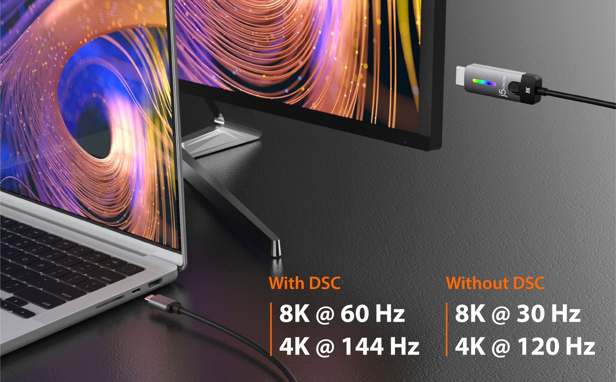 З DSC: 8K @ 60 Гц або 4K @ 144 Гц.