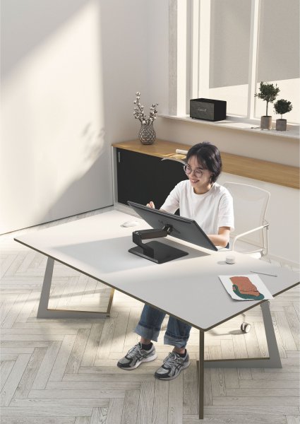 • Поворотна основа та конструкція з можливістю вільного нахилу дають змогу легко налаштувати екран для кращого кута огляду та зменшення відблисків