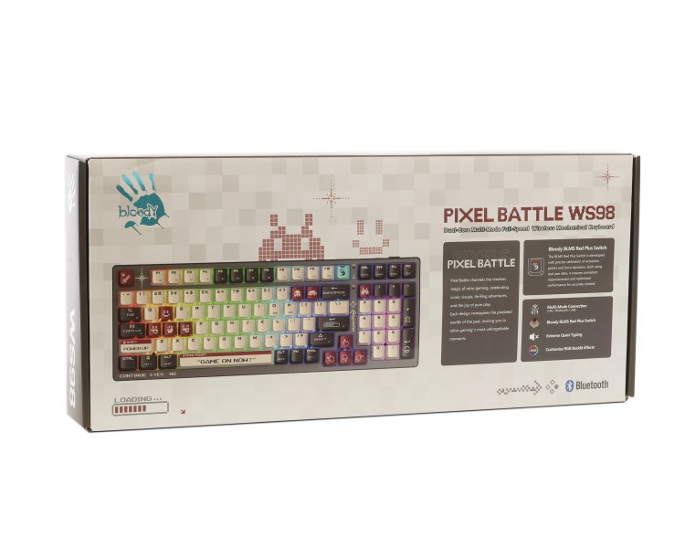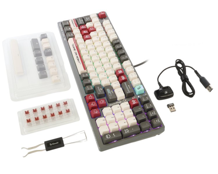 25 ігрових PBT-кейкапів. Кейкапи "ігрових" клавіш виготовлені з PBT-пластику для збільшення їхньої довговічності. PBT-кейкапи Bloody мають ідеально розраховану вагу, що забезпечує своєчасний відгук при натисканні