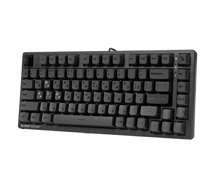 PBT геймерського класу і ABS. 4 високоміцних PBT-кейкапа (W, A, S, D) забезпечують чіпку тактильність і стійкість до зносу ігрової зони клавіатури. Всі кейкапи мають матове покриття, яке прибирає блиск і дарує прекрасні тактильні відчуття від кожного натискання