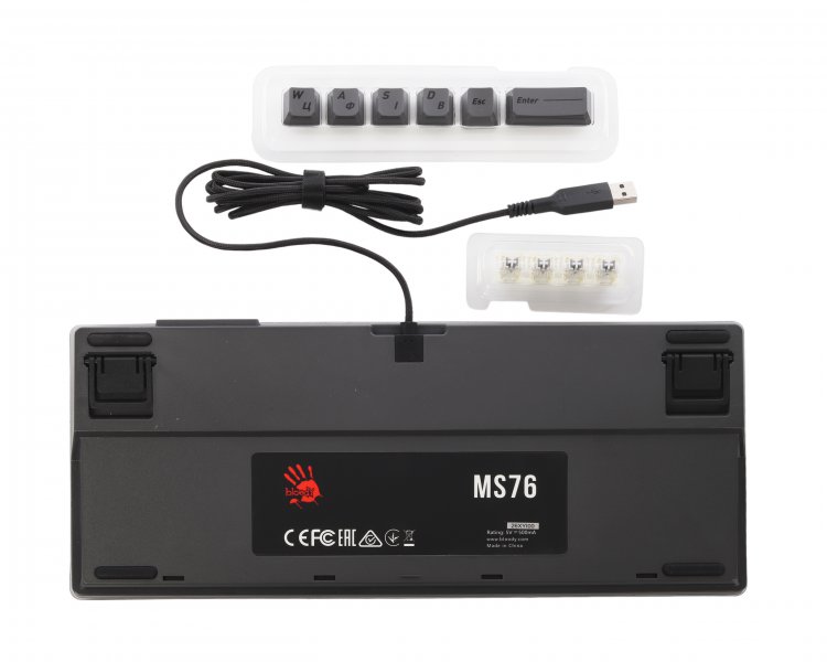 Магнітні перемикачі Bloody MS з функцією гарячої заміни. Точно сконструйовані магнітні перемикачі забезпечують плавне натискання клавіш з тонко відкаліброваним опором. Кожна клавіша спрацьовує з точністю 25 ±5 cN, забезпечуючи швидкий відскок і повний контроль. Розроблені з ресурсом 100 мільйонів натискань